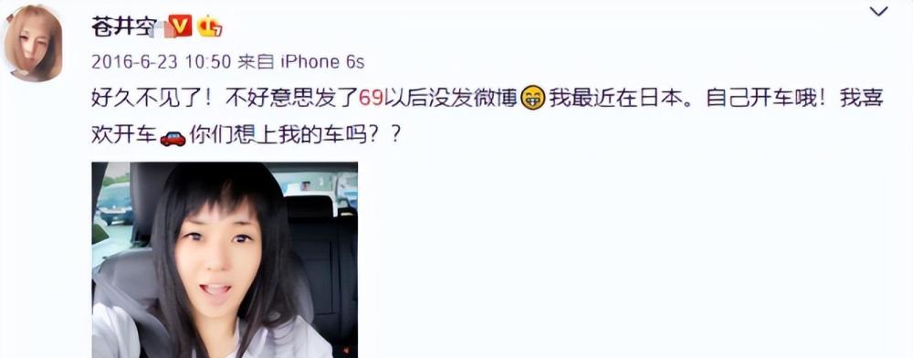 手机访问:wap.265xx.com苍井姐姐连续8年,6月9号发“69”,被质疑在开车,曾2次解答原因