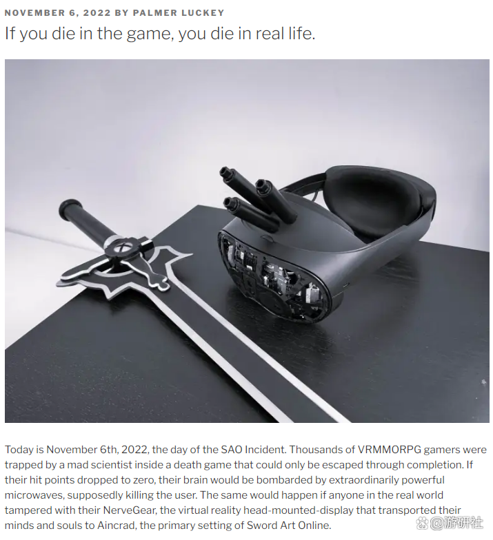 手机访问:wap.265xx.comOculus创始人以《刀剑神域》为灵感开发新VR头显,目标是杀死用户