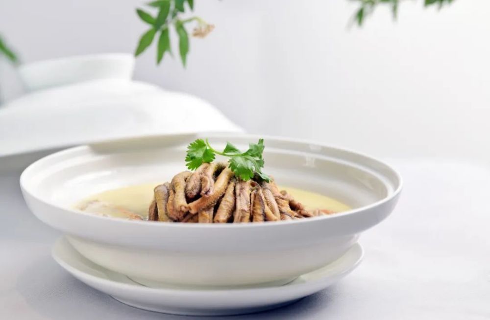 鳝鱼鱼腹肉质厚实,不易处理,需精心处理后,再以文火慢慢煨煮。加入干丝一起,更添咸香。鱼肉嫩滑细腻,干丝软嫩适口,汤汁乳白,浓郁鲜美。