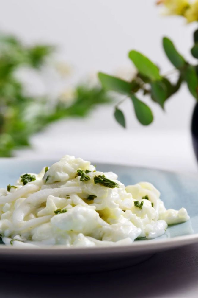 选取此时春笋,笋肉焯熟后切成小片。小葱青绿,为葱油带来鲜活的色彩与浓郁的葱香。笋肉清脆可口,加入葱油后更添风味。葱绿笋白,一片浓浓的春意尽在盘中。