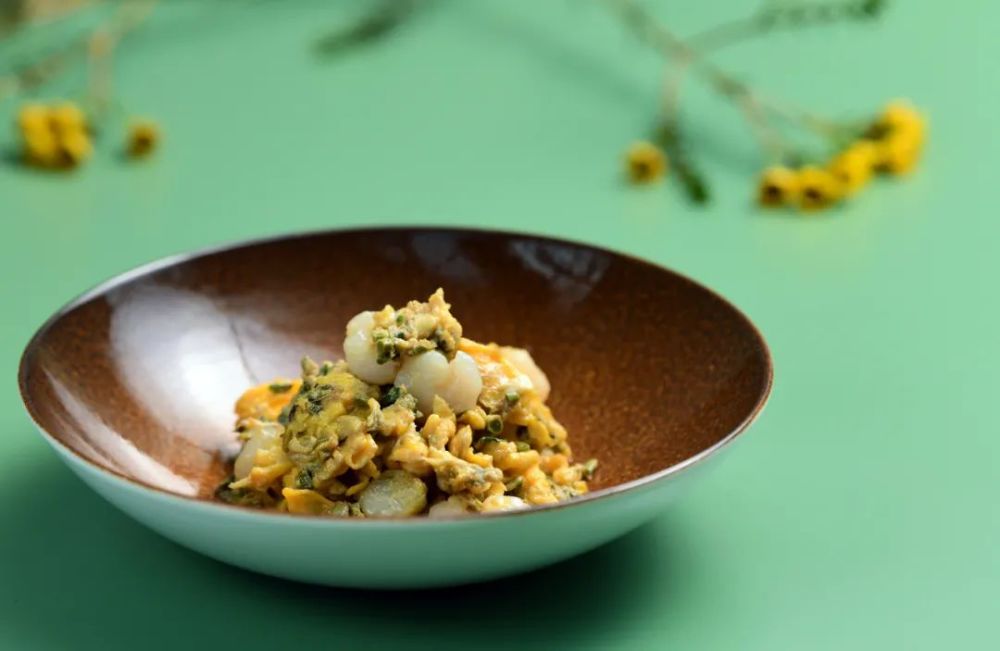 阳春三月,香椿正好,更有来自长江水域的优质银鱼。最好的时令滋味无需复杂的烹制与调味,银鱼与蛋白滑炒,鲜香四溢。白若凝脂,几分清绿,便是最鲜美的风味