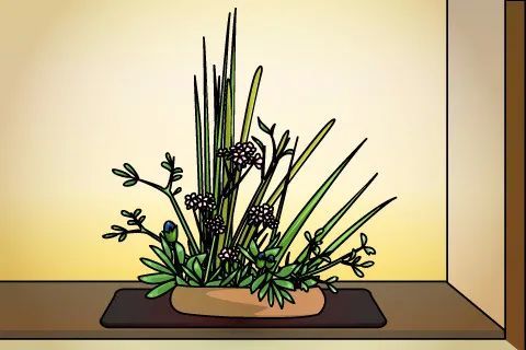 花道通过插花来追求理想的美,但不仅仅只追求花的美,也关心与花所处环境的协调和变化。并且将人的想法和感情寄托在花上,表达自己的内心。