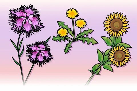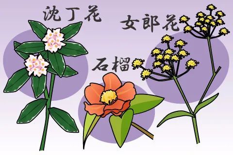 夏:牵牛花、茴香、燕子花、花菖蒲、百合、金鱼草等