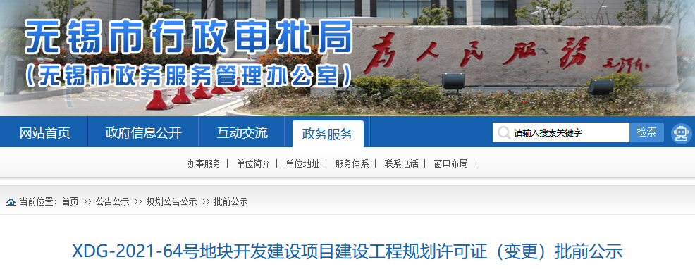 今日,无锡市自然资源和规划局对XDG-2021-64号地块开发建设项目建设工程规划许可证 (变更)进行批前公示。