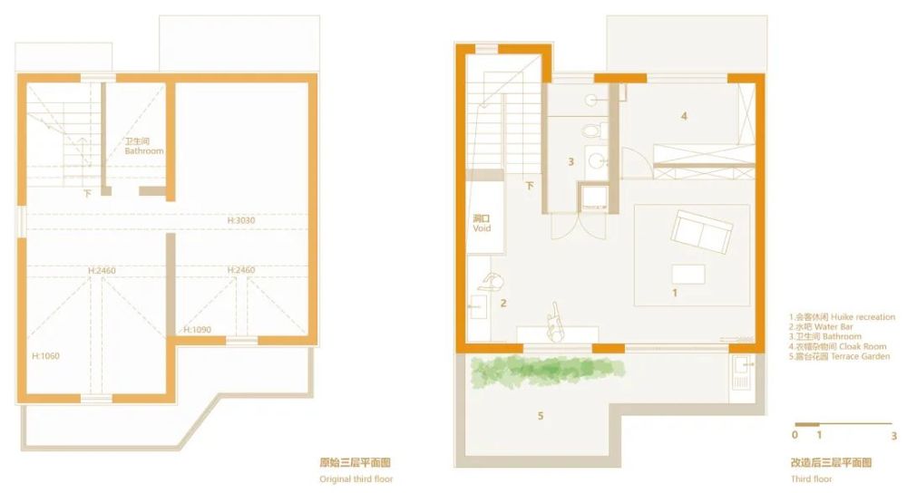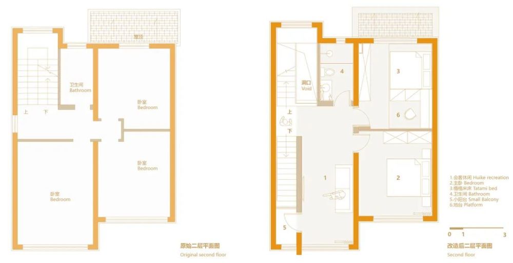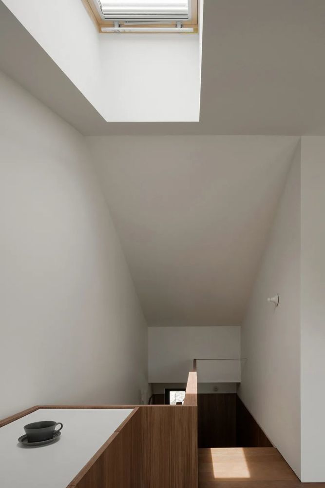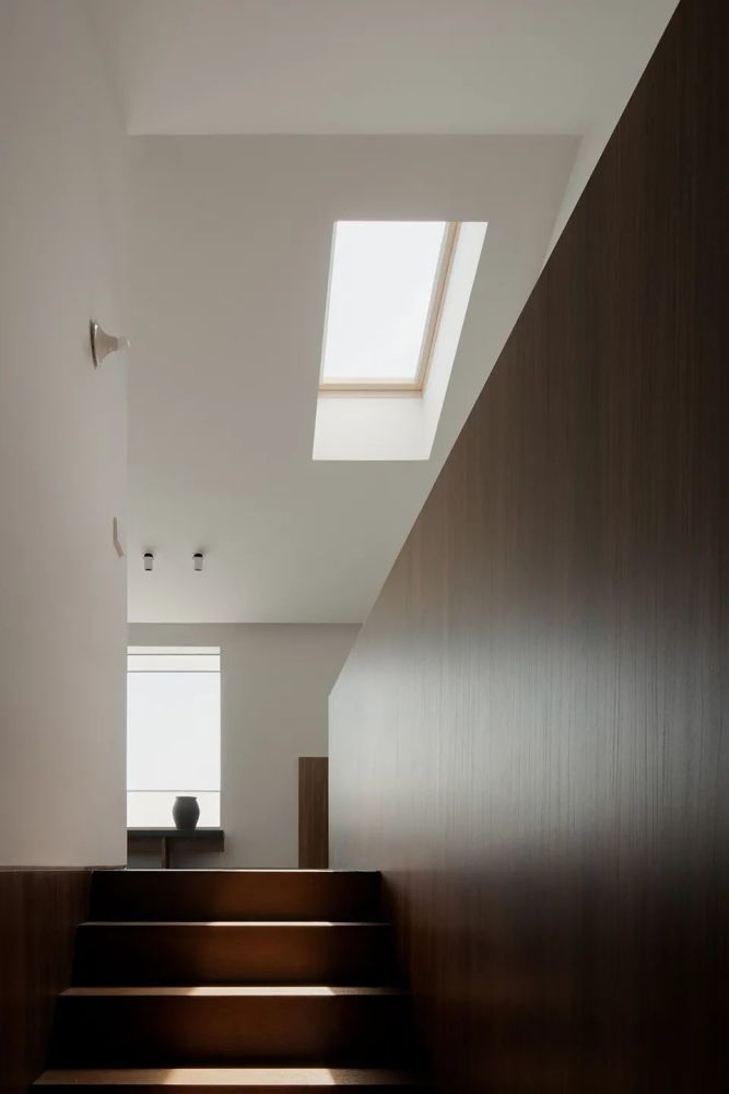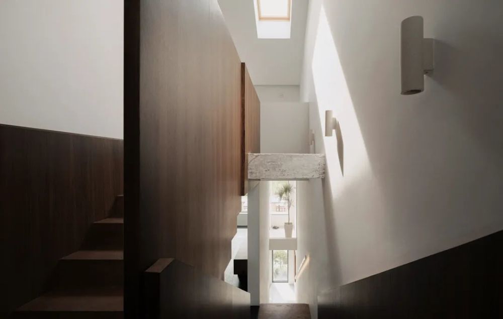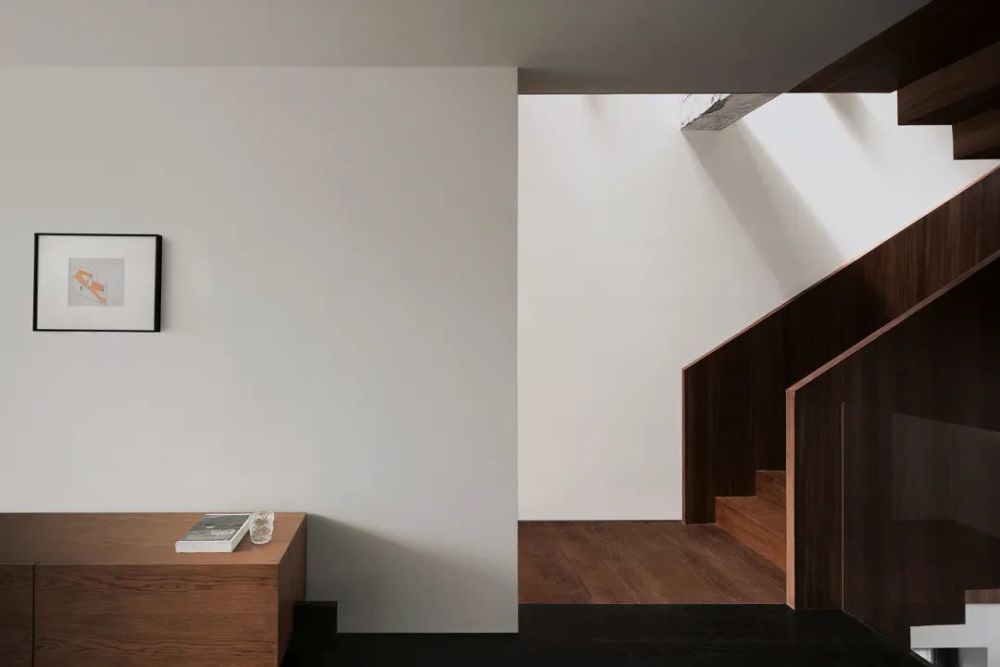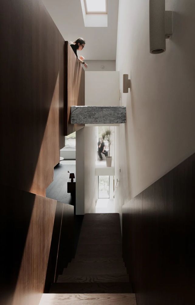 几言设计希望用尽可能少的手段应对现有矛盾,激活焕新老宅的内在价值,在满足基本功能舒适性的前提下,我们植入了出一个足够承载家庭交流互动,可以自由组织探索,可以感受时间性自然性空间连接器。原房子单层面积比较有限,策略上我规制各个功能的尺度合理性,同时应对特殊功能场所予以了足够的空间体验,并且内部反其道在创造了一个超乎寻常尺度的公共空间,小房子里我们切开了一个口子,通过空间动线改道重塑加上各楼层自然光线的引入,打造一个三层通高的超常规尺度的空间,楼梯不再单一的交通属性,这是一个具有如同街巷尺度的场所,“巷子”将多个楼层进行串联,满足功能性的同时承载着人的关联,实现公共性,交流性,自然性的最大化。这是个小家的精神内核,我们称它井巷子。