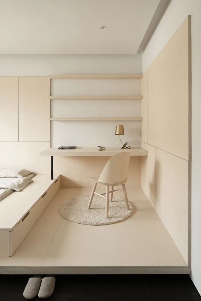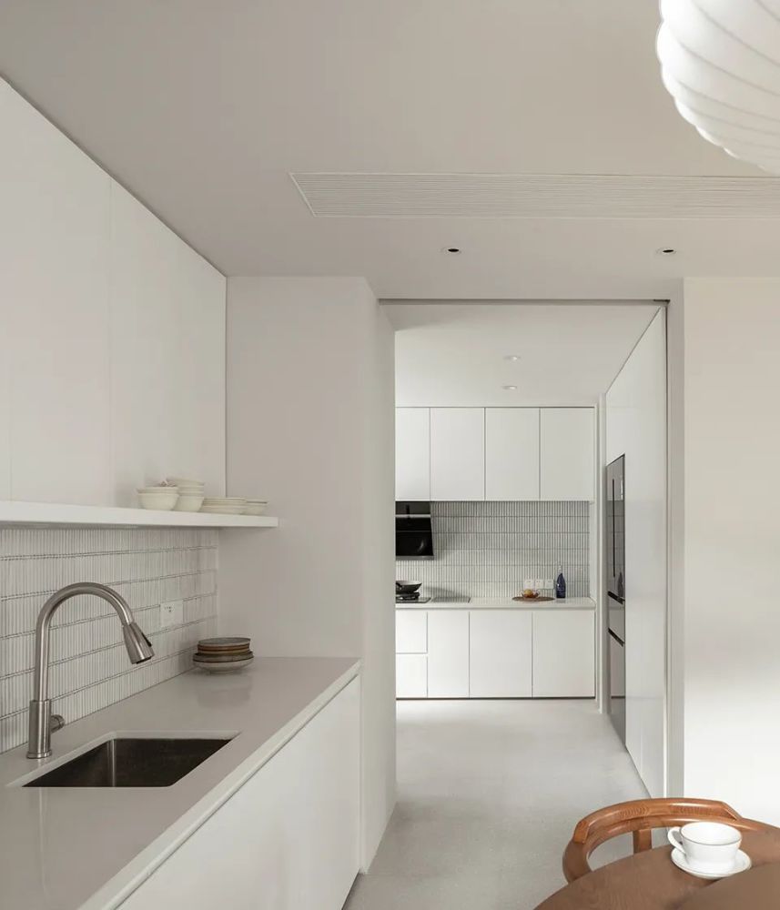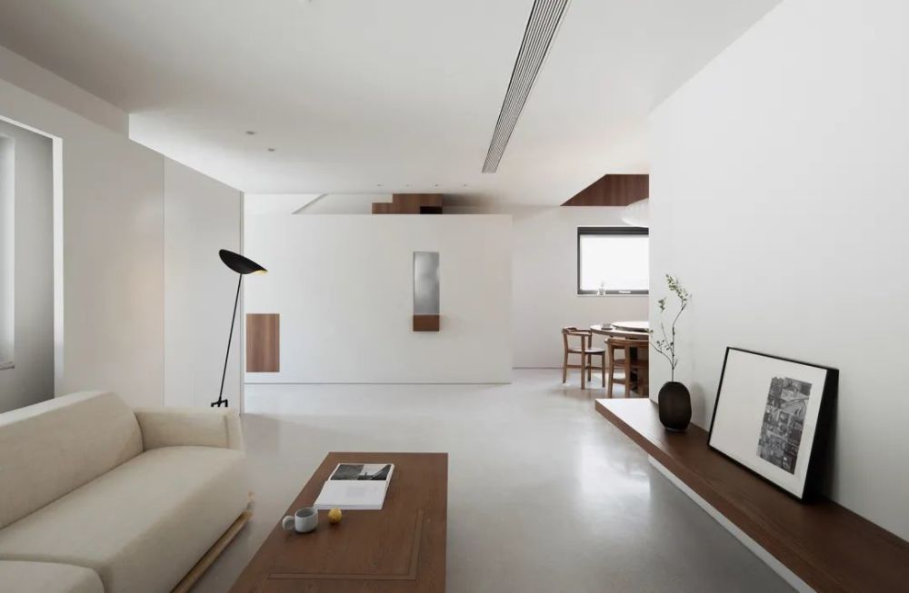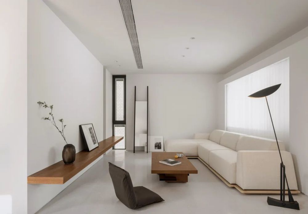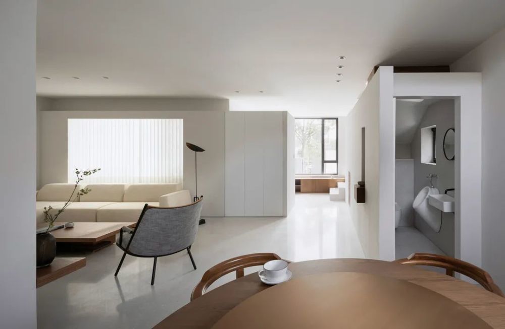 整体性上,我们试图找到人与空间的双向互动,用简单克制的手法,尽可能的放弃装饰、符号与形式的内容,让空间回归通透与自由,让生活回归简单和真实。寻找空间本质的力量,还原生活的日常和精神性的本质。在空间中,材料,家具软装层面是节制的精量化的,用到的材料总结下来差不多三到四个材料,同时我们为项目量身设计了多个重点部位的家具,让它具有更加明确的空间气质 。