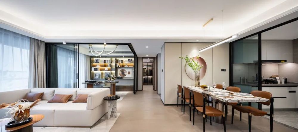 在该项目置业顾问的引导下,小编走进了143平方米、185平方米两个高层住宅样板间。143平方米房型整体设计客餐双厅连通观景阳台,空间开阔,厨房直达餐厅;独立书房私密布局;主卧南接飘窗,采光良好,南北通透;主卧套房,拥有独立卫生间;主次卧分离,互相不干扰。185平方米房型入户玄关设计,大面宽餐客厅;三开间朝南,采光通透;主卧大飘窗设计,带有独立卫浴衣帽间,开阔的景观视野,风景尽收眼底,自带独立卫浴。两种户型都避免了平层住宅经常出现的“动静不分”,又保障了居住私密性。