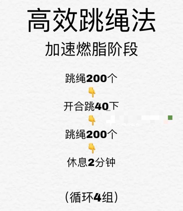 跳绳是我认为减肥最牛逼的运动方式,每天也不需要太久,半个小时,实在不行,刚开始你坚持20分钟总可以吧,慢慢的加到30分钟,保证你蹦出一身汗,就在你一次一次跳绳的过程中,你的肉肉越来越少。