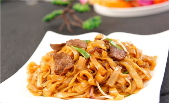 干炒牛河是广东的特色小吃。干炒牛河是选用河粉,牛肉,芽菜,葱制作而成的。干炒牛河的口感:咸香可口。