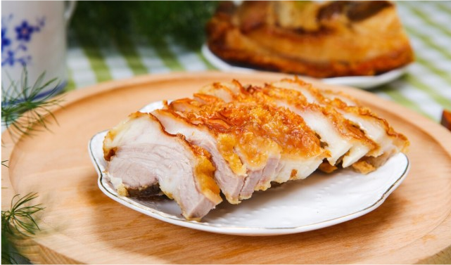 脆皮烧肉是广东的传统名菜,选用猪五花肉,加入玫瑰露,五香粉,粗粮,进行烤制而成的。脆皮烧肉的脆皮是最大的特点,非常酥脆可口,猪肉鲜嫩好吃。