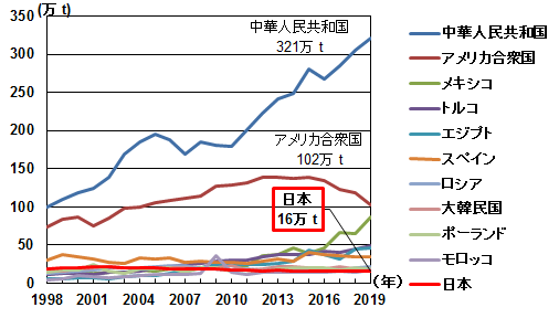 近20年日本草莓产量变化图