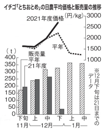 2021年日本草莓王牌枥木少女均价和销售量示意图