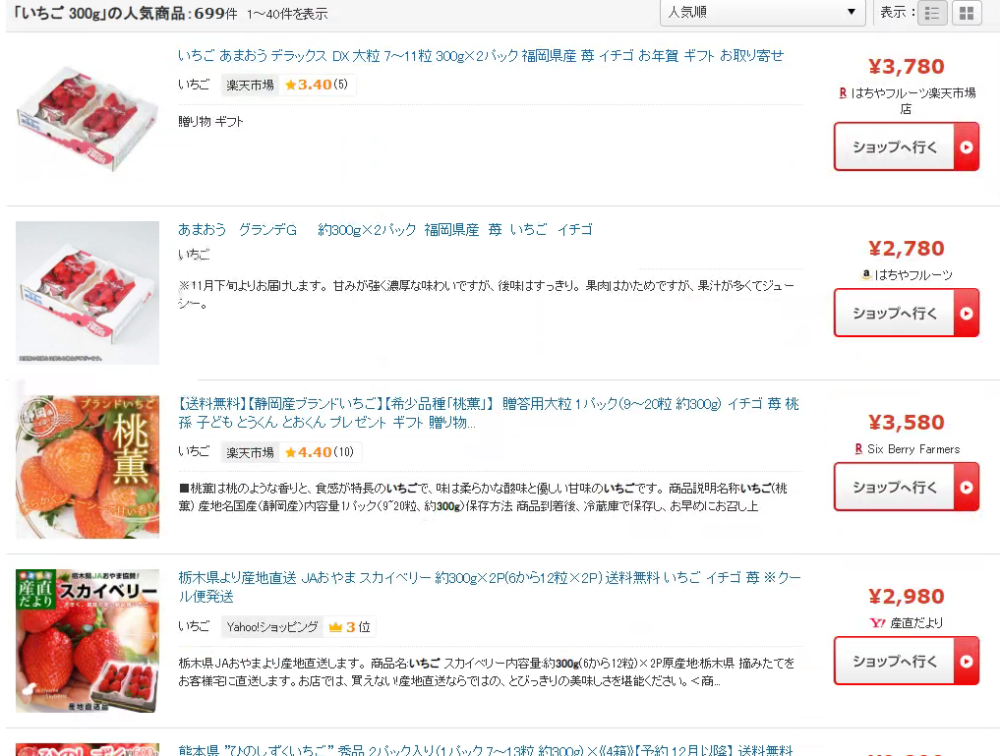 日本比价网站kakabu上草莓的价格,和去年相差无几