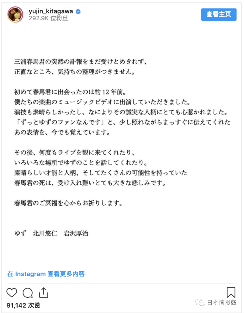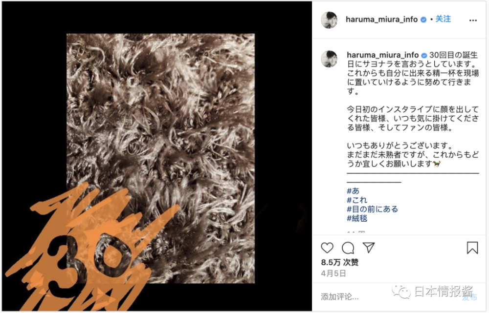 今年4月5日,迎来30岁生日的三浦春马,在生日当天于自己的Instagram上发文感谢所有粉丝们的支持。但谁也没料到,私底下爱下厨房、常给人开朗印象的三浦春马,却在3个多月后的昨日(18)选择以上吊的方式离开人世。(请关注微信公众号:日本情报酱)