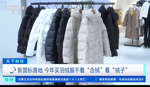 记者来到江苏南京新街口商业区,销售人员介绍,十月下旬,羽绒服销量逐步上升,今年4月起,羽绒新国标正式实施,最大亮点是把“含绒量”修改为“绒子含量”。记者翻看了一件羽绒服的吊牌,吊牌上已经没有“含绒量”的标注。