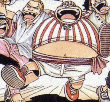 他是顶上登场的红团干部中唯一没有在风车村登场过(或者我们没找到)的角色,所以可能是后来加入的猛人,比原成员更有可能是恶魔果实能力者。他跟本迪克·斯内克的英文名前面都是一个现在分词,不知道是修饰语还是单纯的姓氏。如果是现在分词可能跟他们的能力或特点有关。