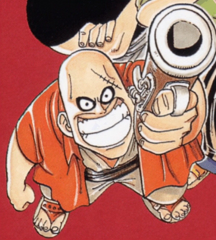 他在第1话和原画集里都拿着一把带护手的剑,但在顶上登场时也换成了棍状武器。不知道为什么,我总感觉他像是和之国的人……他12年前的出场里都缺了颗前牙,不过顶上登场的时候好像补上了(?