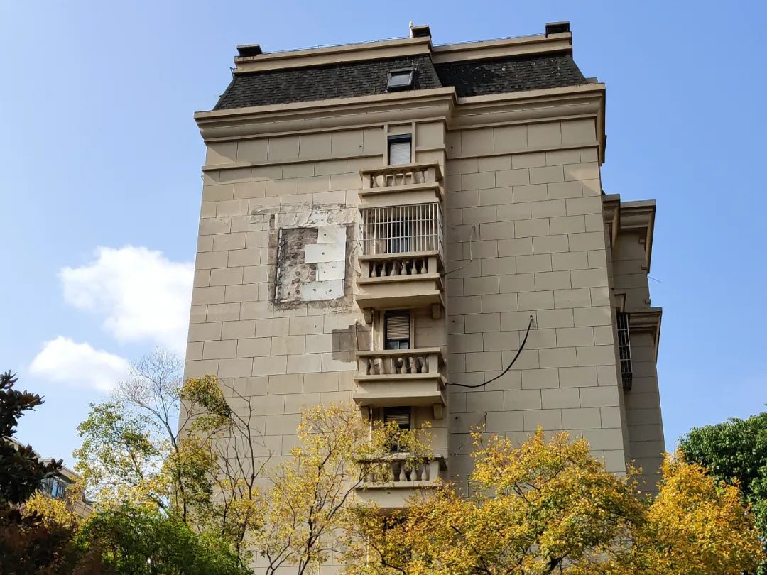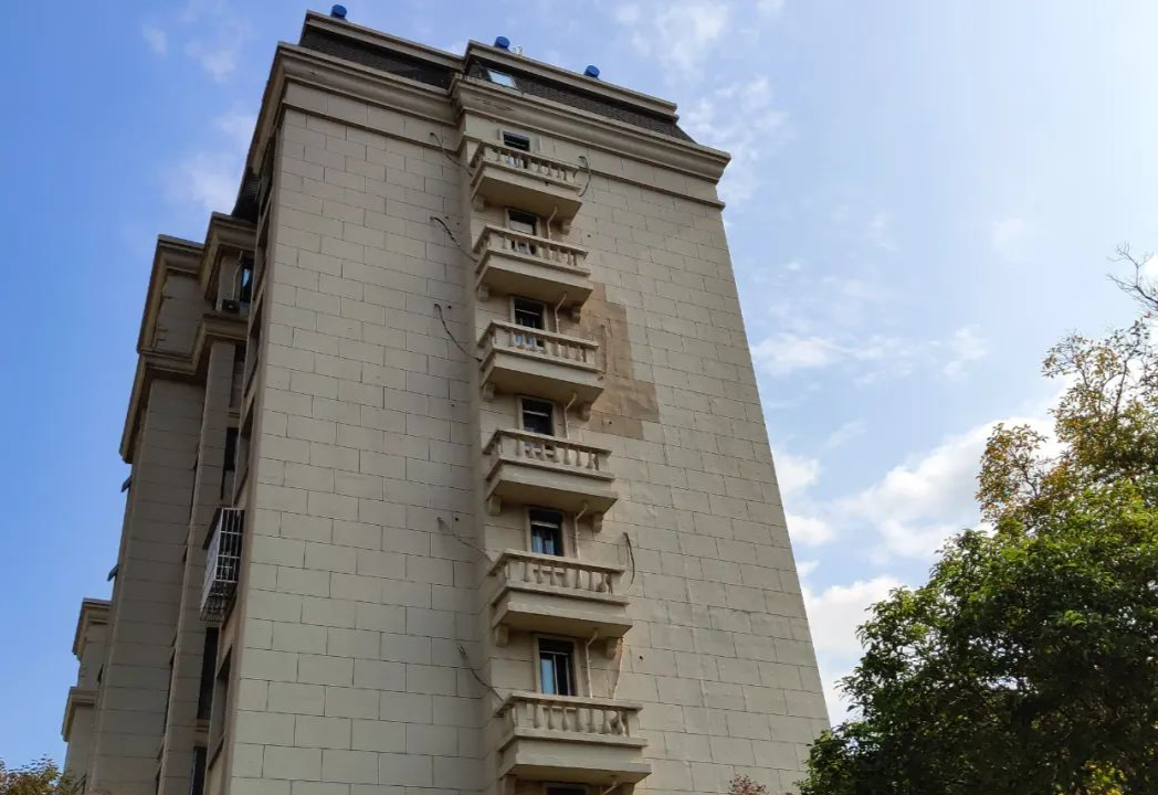 不过我注意到,部分楼栋的外立面已经出现破损。