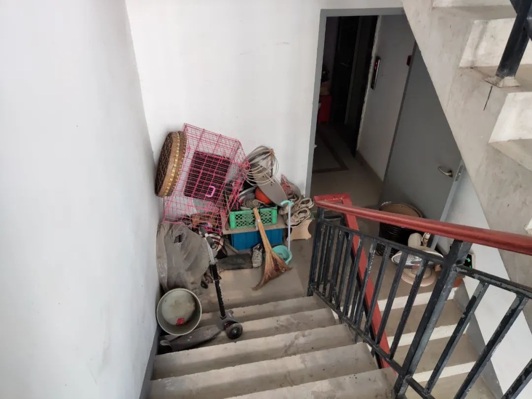 楼梯间的公共区域堆满杂物,并未及时清理。