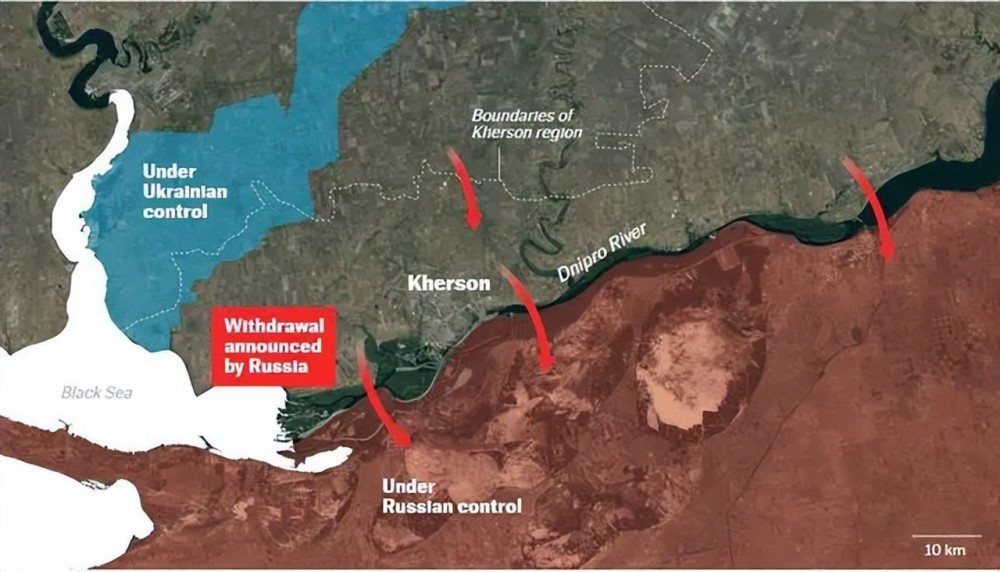 随着9月份俄军在哈尔科夫的撤退,俄乌战场的局势逐渐开始攻守易形。乌克兰紧跟着俄军撤退的脚步,重新控制了近8000平方千米的领土。此后的近两个月里,俄军也未在正面战场发起过大规模进攻,仅使用巡航导弹、巡飞弹等远程武器打击乌克兰后方固定设施。本月9号,俄军开始从赫尔松向第聂伯河东岸全线后撤,11号凌晨5时俄罗斯宣布全部人员与装备都已转移到位,没有“一名士兵或一件装备留在西岸”。相比一路丢盔弃甲的哈尔科夫大撤退,本次的撤退显得相当“成功”。