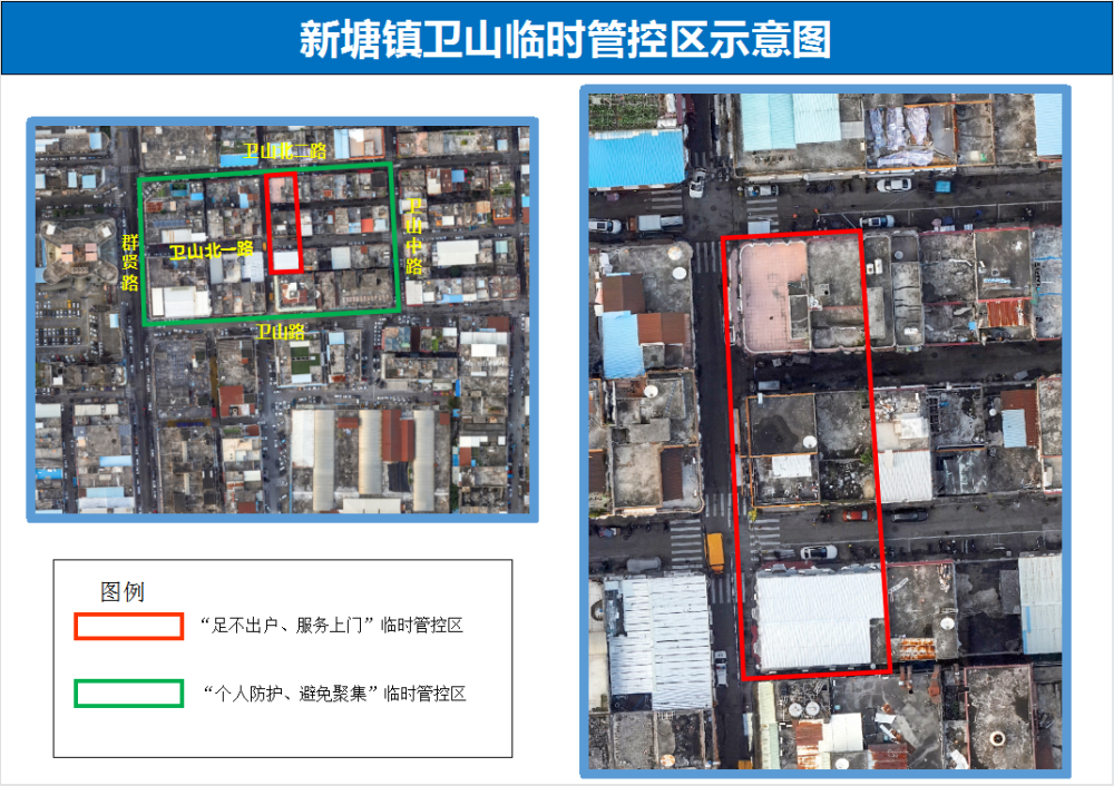 二、新塘镇东至卫山中路、南至卫山路、西至群贤路、北至卫山北二路的合围区域,实行“个人防护,避免聚集”等管控措施。离开所在区域须持48小时内核酸检测阴性证明。
