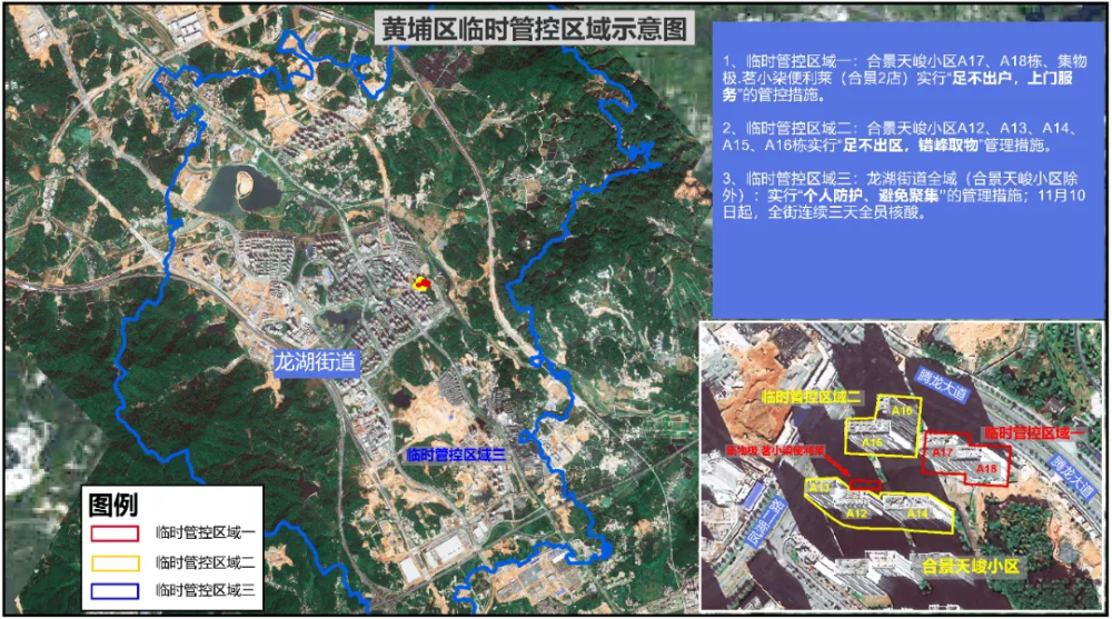 三、龙湖街全域(合景天峻小区除外)实行“个人防护、避免聚集”的管理措施,11月10日起,连续三天全员核酸筛查。