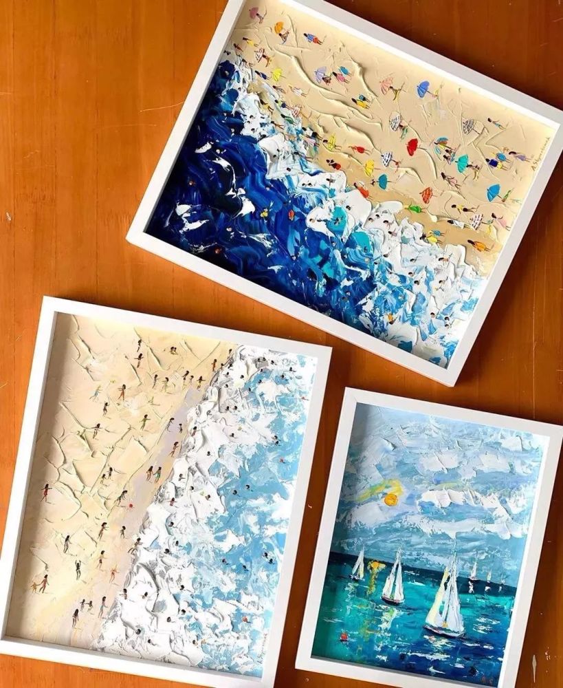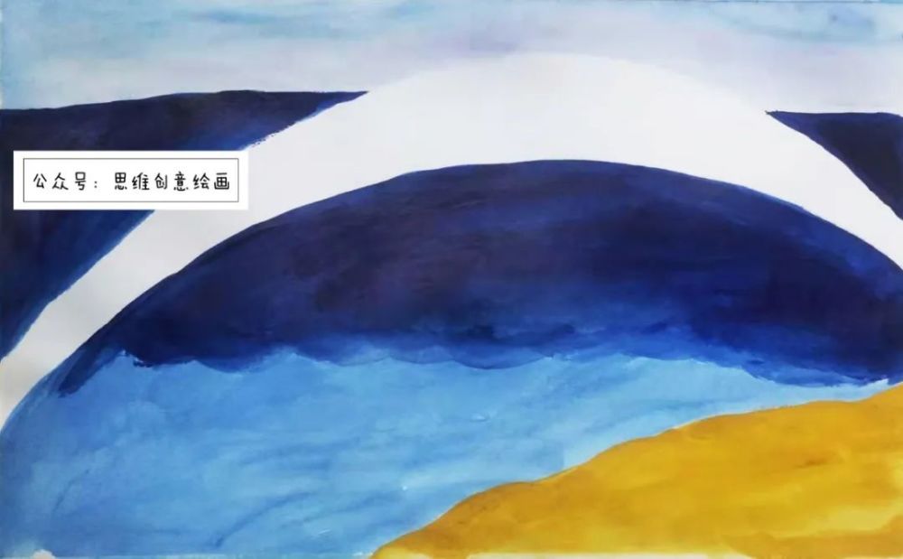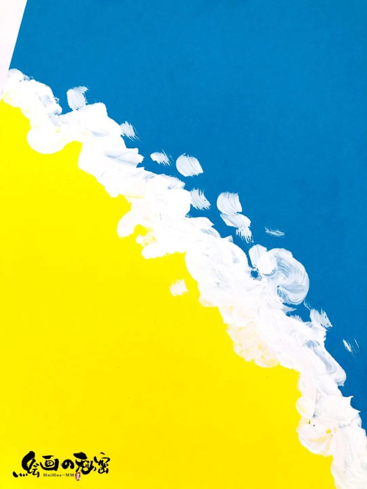 步骤二:我们利用水粉白或者重彩棒的白色来添加海浪的浪花。