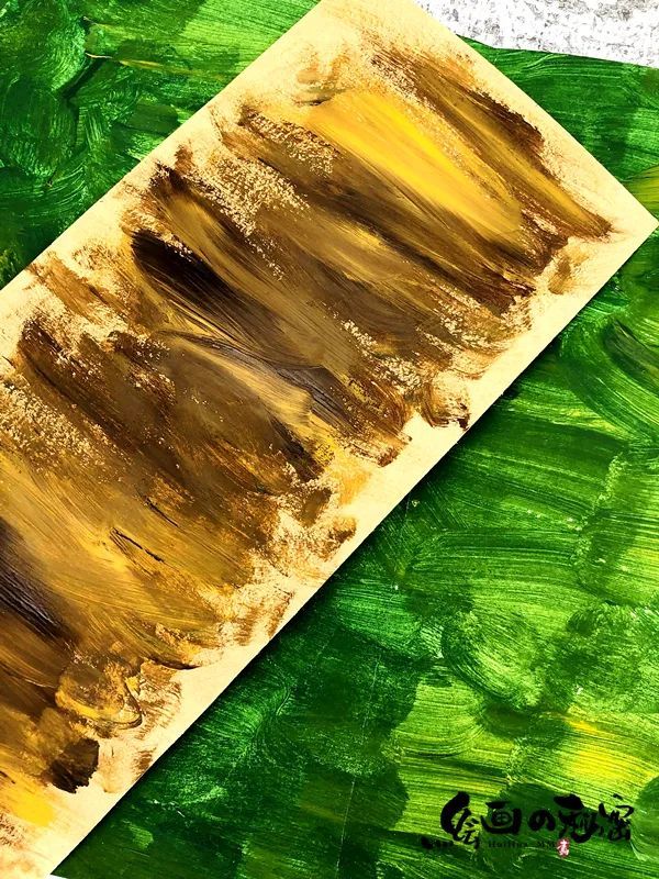 然后用刮刀或硬纸片,涂抹刚刚画上的重彩油画棒,使色彩融合。