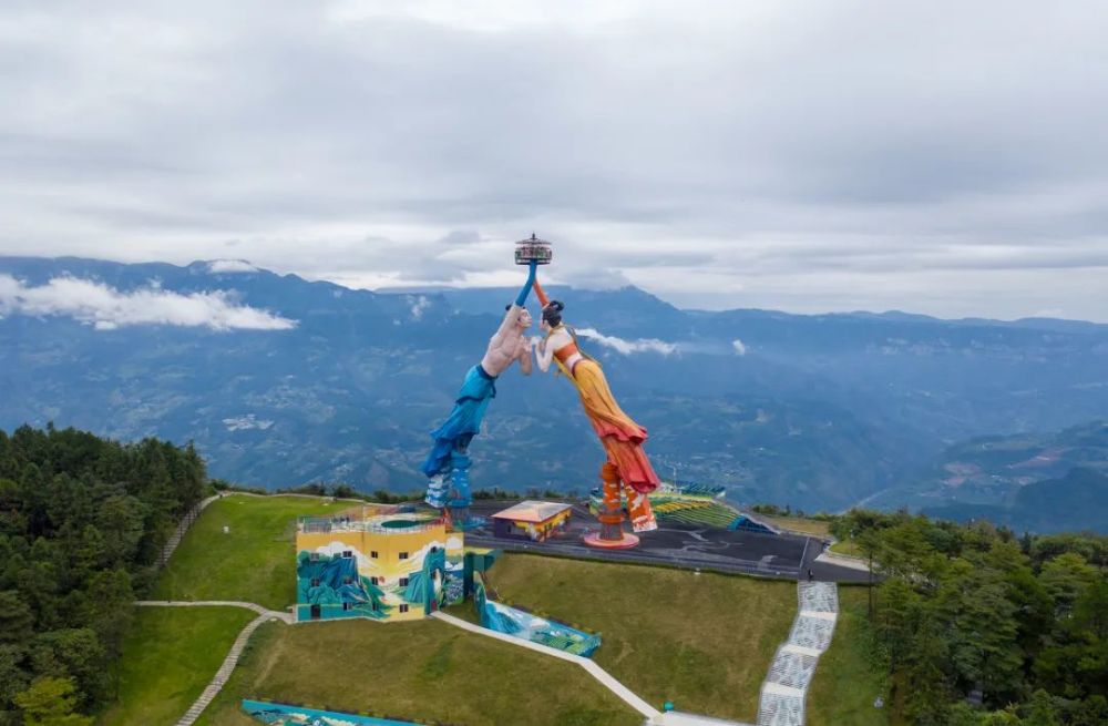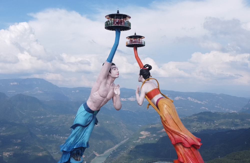 四尊超巨型羌族男女雕像