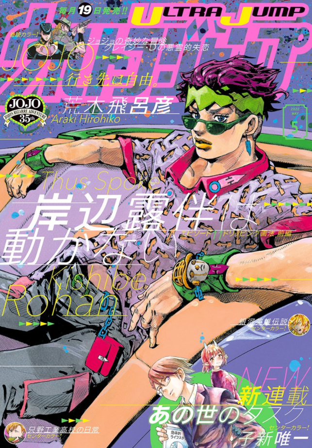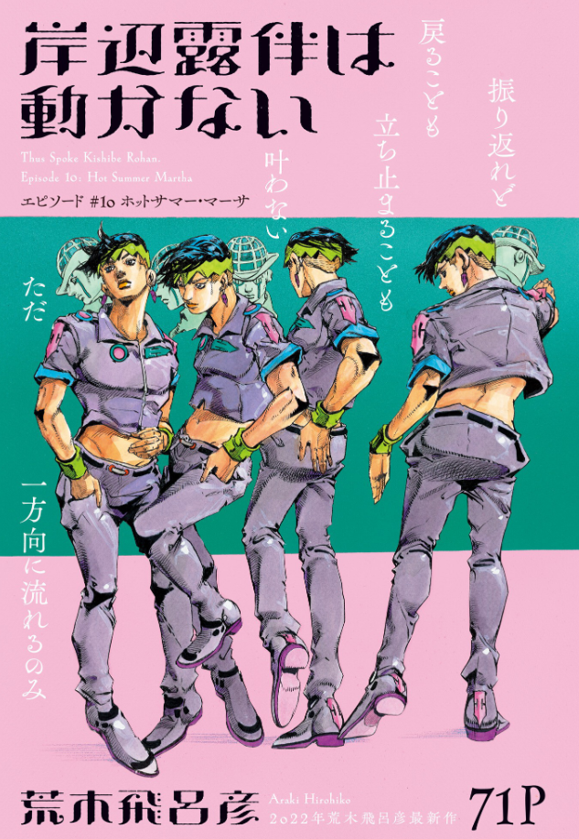 此外,渡边还猜想了两部可能真人化的故事,分别是《JOJO magazine 2022 SPRING》(集英社)今年3月刊载个故事10“热夏玛莎”和《ultra jump》5月号和6月号刊载的故事11“滴撒画法”。