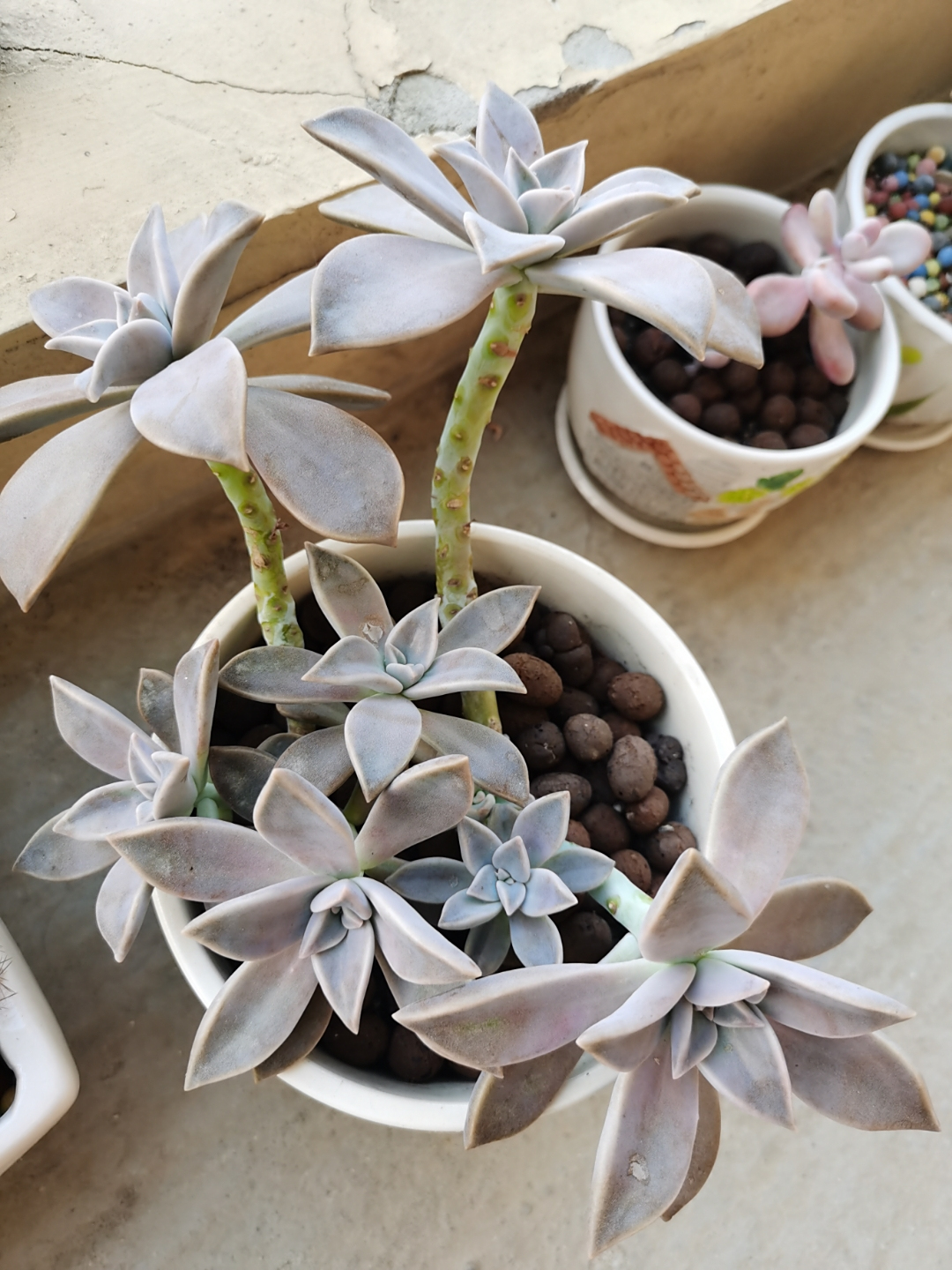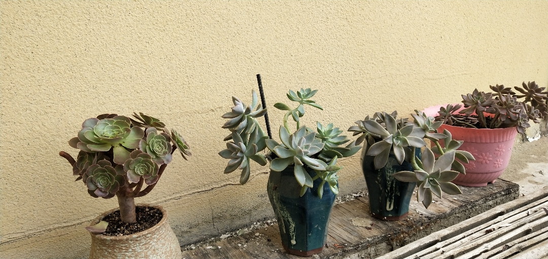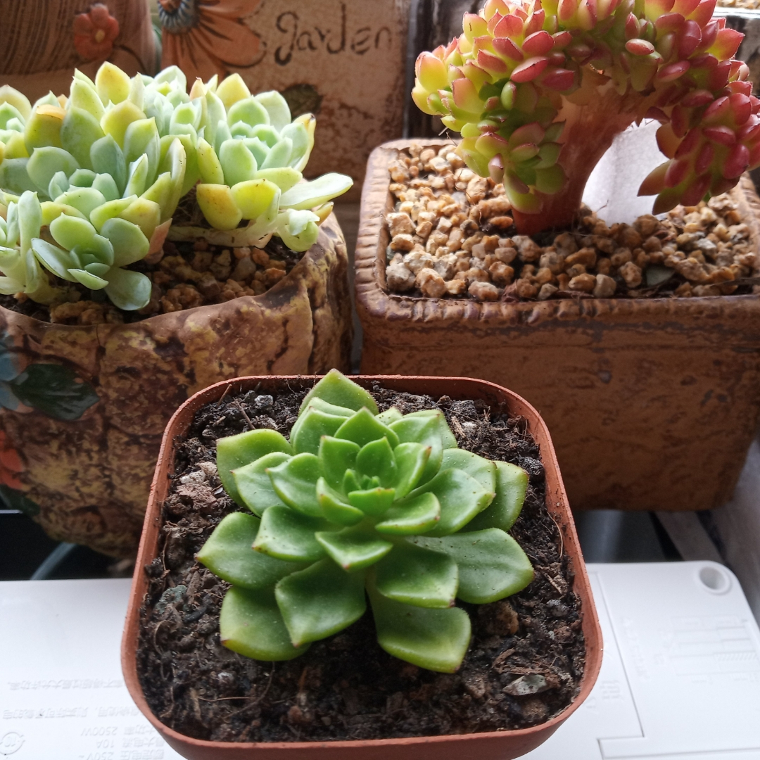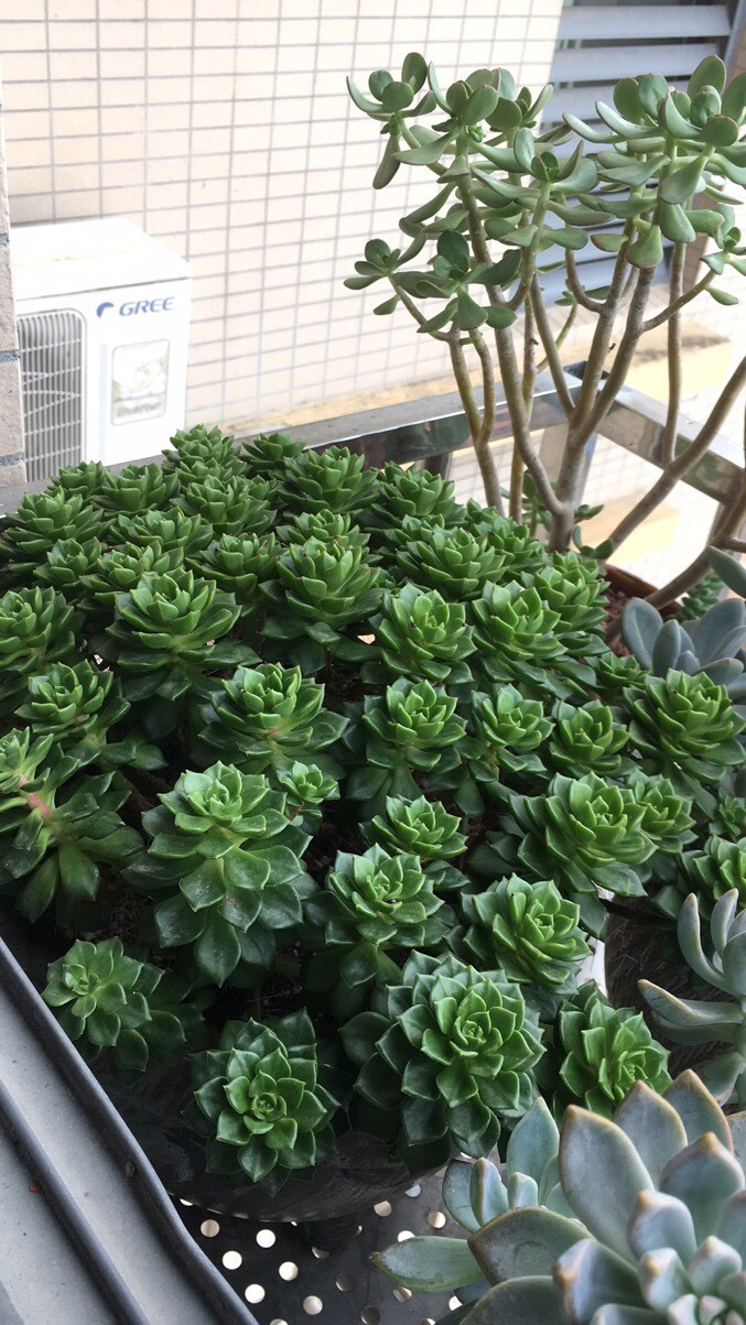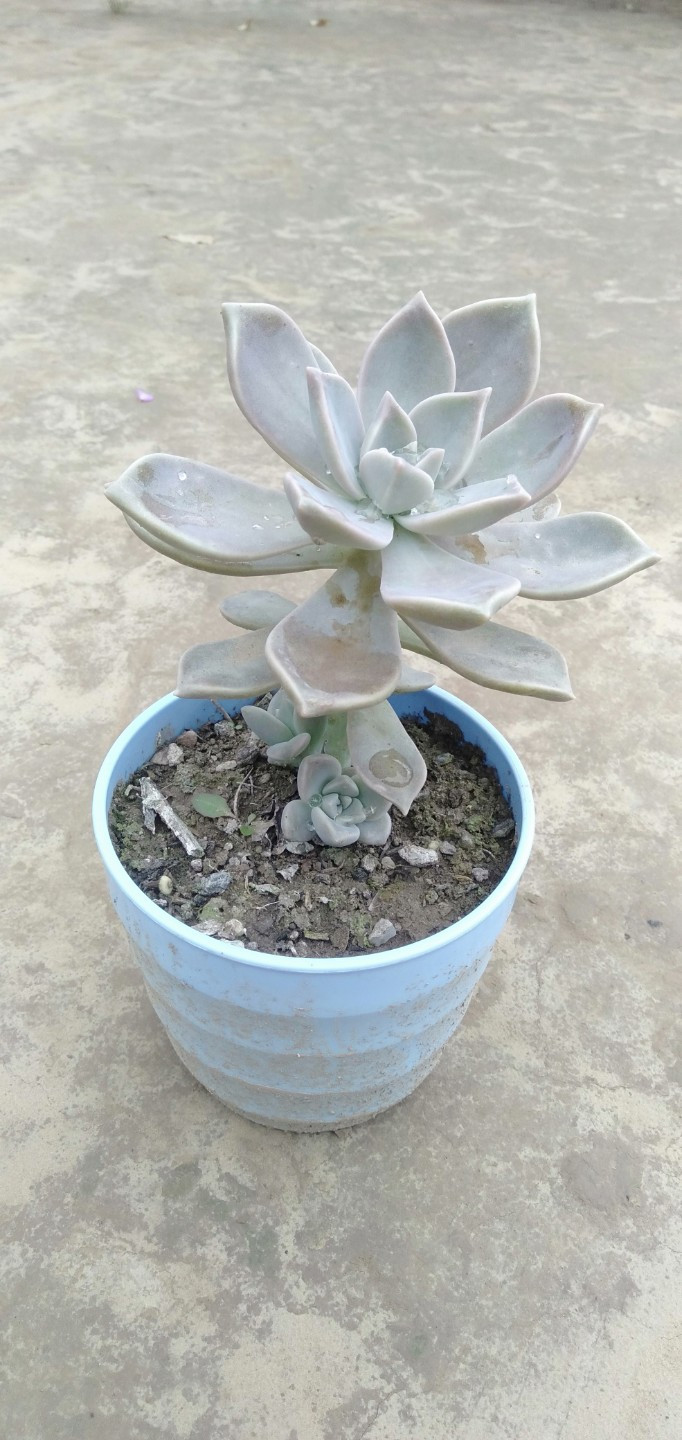 然后去年扔在老家一直没管过,当时也不知道它叫胧月 ,去年冬天有点冷都没被冻死,今年我喜欢上肉肉了我就把它从老家带来,一开始放的地方光太少,还经常下雨,看着长得慢,后来我换个阳光好的地方养,天天看,发现长得好快呀