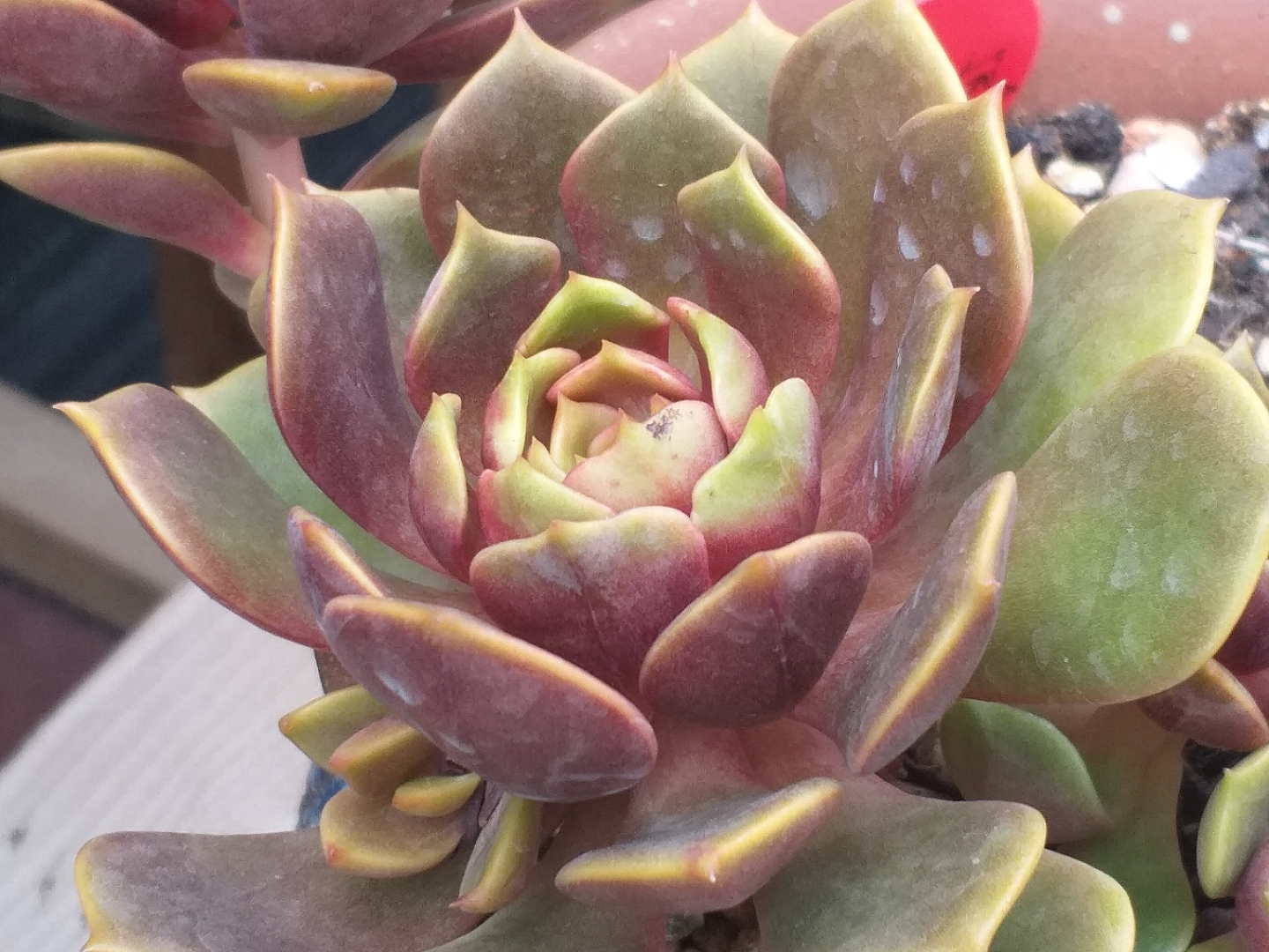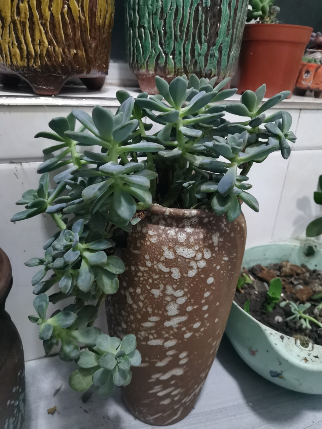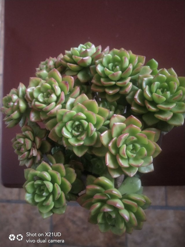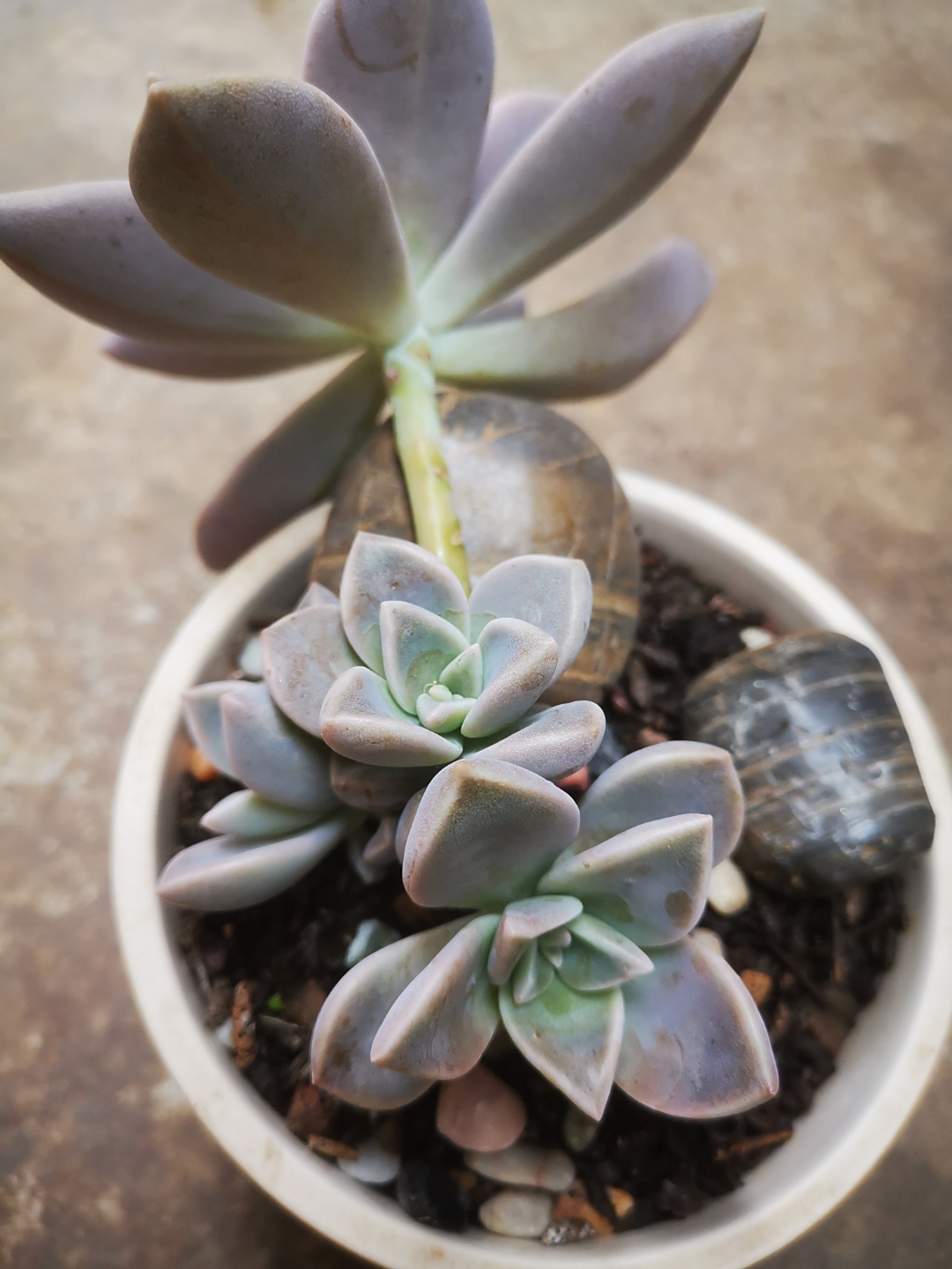 然后去年扔在老家一直没管过,当时也不知道它叫胧月 ,去年冬天有点冷都没被冻死,今年我喜欢上肉肉了我就把它从老家带来,一开始放的地方光太少,还经常下雨,看着长得慢,后来我换个阳光好的地方养,天天看,发现长得好快呀