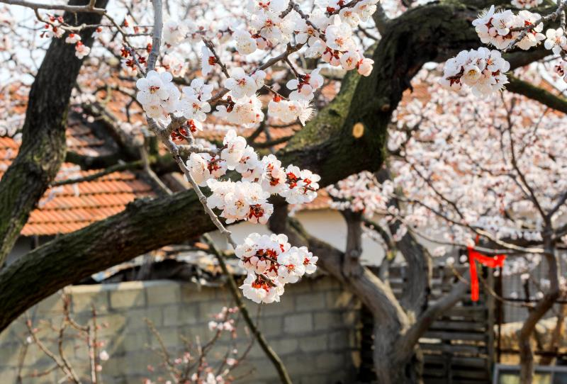 大孤山地区近两千株杏梅花盛放