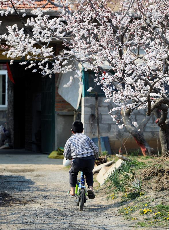 迎着春日暖阳,下车步入村中