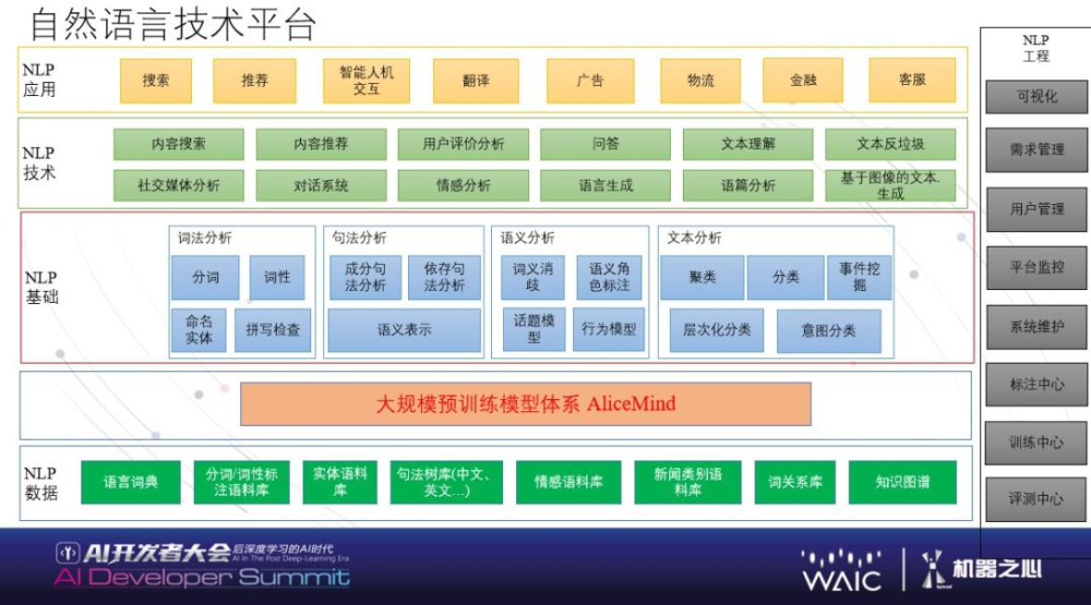 如Open AI、腾讯、阿里等公司的预训练语言模型。以阿里为例,其语言模型作为自然语言技术平台的底层能力,支持产品的搜索、推荐、广告、客服等功能。