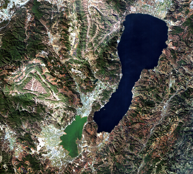 以上的考古还没有定论,传说也是真真假假,给“大美抚仙湖”平添了很多神秘色彩。我是学习和从事摄影测量与遥感专业的测绘工作者,从遥感影像上无数次的“凝视”过抚仙湖,只看到一些表面的现象,有两座“三角形”的山脉倒是明明白白的能看到,抚仙湖的水下是黑漆漆的,如黑洞一般,在遥感影像上的信号很微弱,所以提取不出什么信息来。