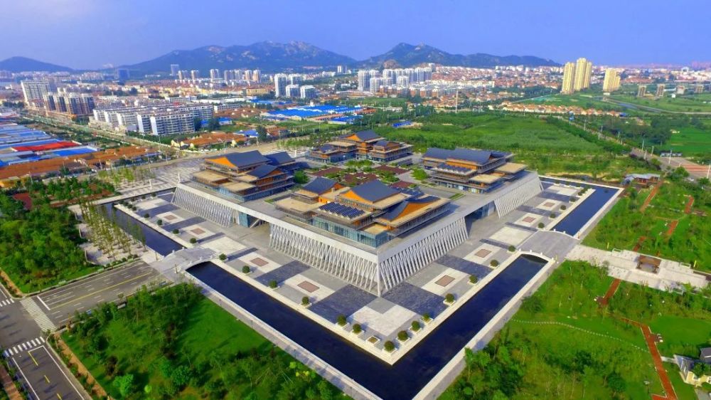 岚山区文化服务中心,位于区政府与多岛海之间的中轴线上,地理位置北与行政中心呼应,南与未来规划的商务中心呼应,西为湿地公园,交通便捷、特色鲜明,是城市重要节点。岚山区文化服务中心整体建筑形态依据安东卫“卫城”原型,平面呈方形,东西南北开设四个入口,是诠释“卫”和“渔”这两种岚山文化特性的代表性公共文化设施,科技馆、博物馆、图书馆、城市规划展览馆位于四角,中央为文化馆,五馆合一,功能齐全,综合性强,是岚山区重要的文化交流场所和娱乐活动中心。