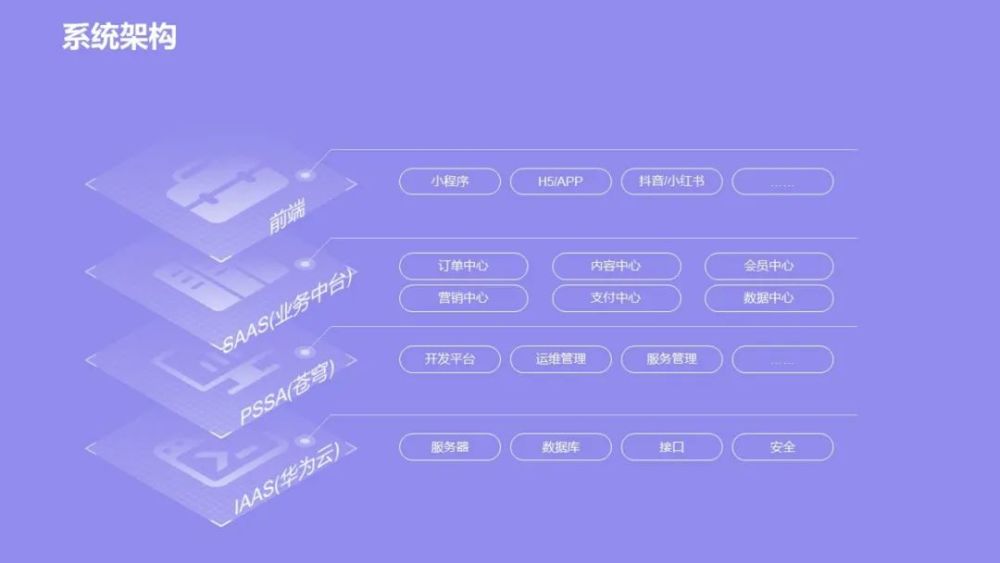 小程序建立完善的业务中台架构,将共性功能抽取形成标准的会员、营销、内容、服务、结算、订单、控制、昆仑、消息、发票、支付等中心架构,使系统具备快速适应前端业务系统变化的环境。