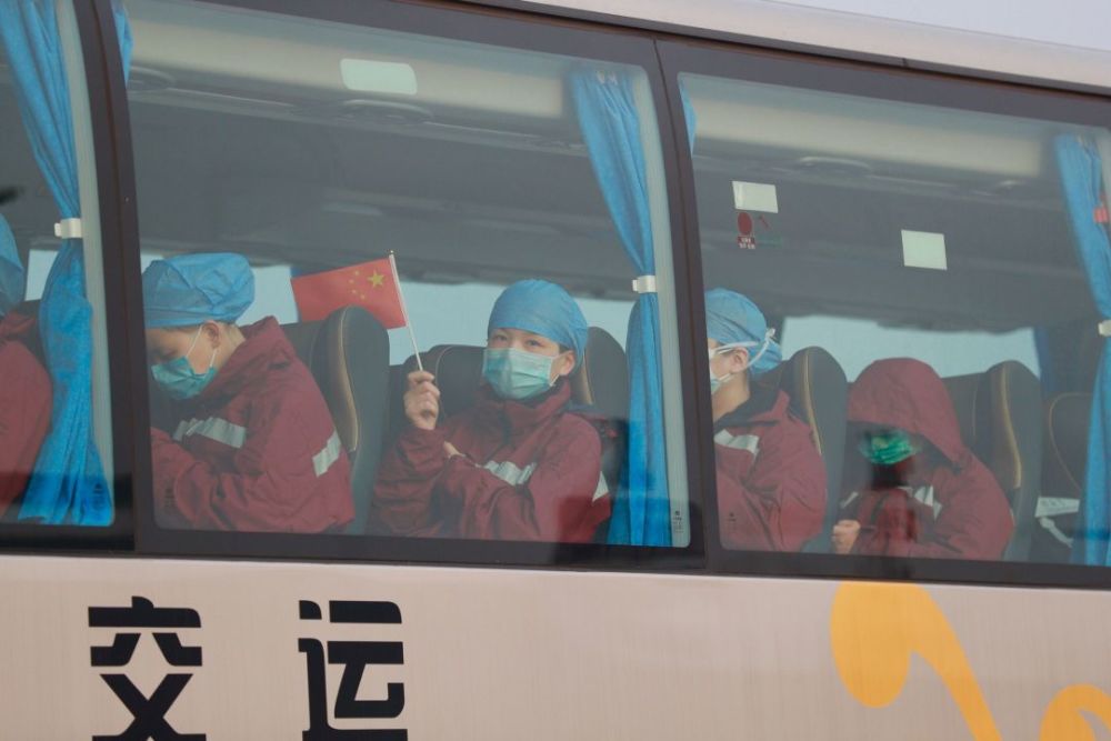 福建医疗队乘坐的大巴车