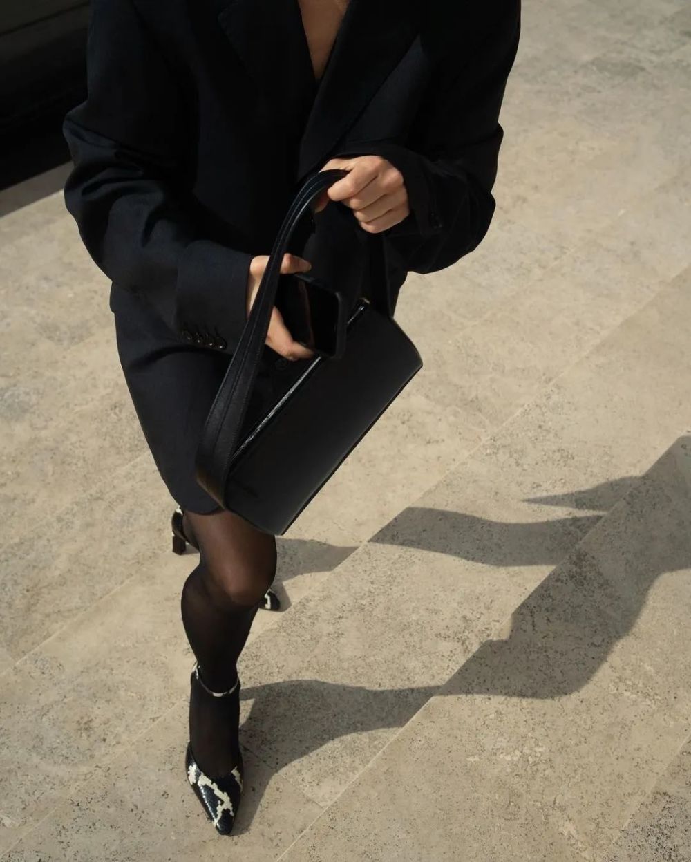 比如博主Carolina Porqueddu的All Black,就穿了一双黑白蛇皮纹的高跟鞋,任谁在街上看到她,都很难不被那双鞋子吸引吧!