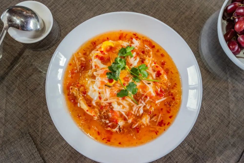泰汁五柳炸蛋,用泰式酸甜汁替代传统的五柳汁,降低了菜品的甜度,味道清新开胃,备受年轻食客青睐。