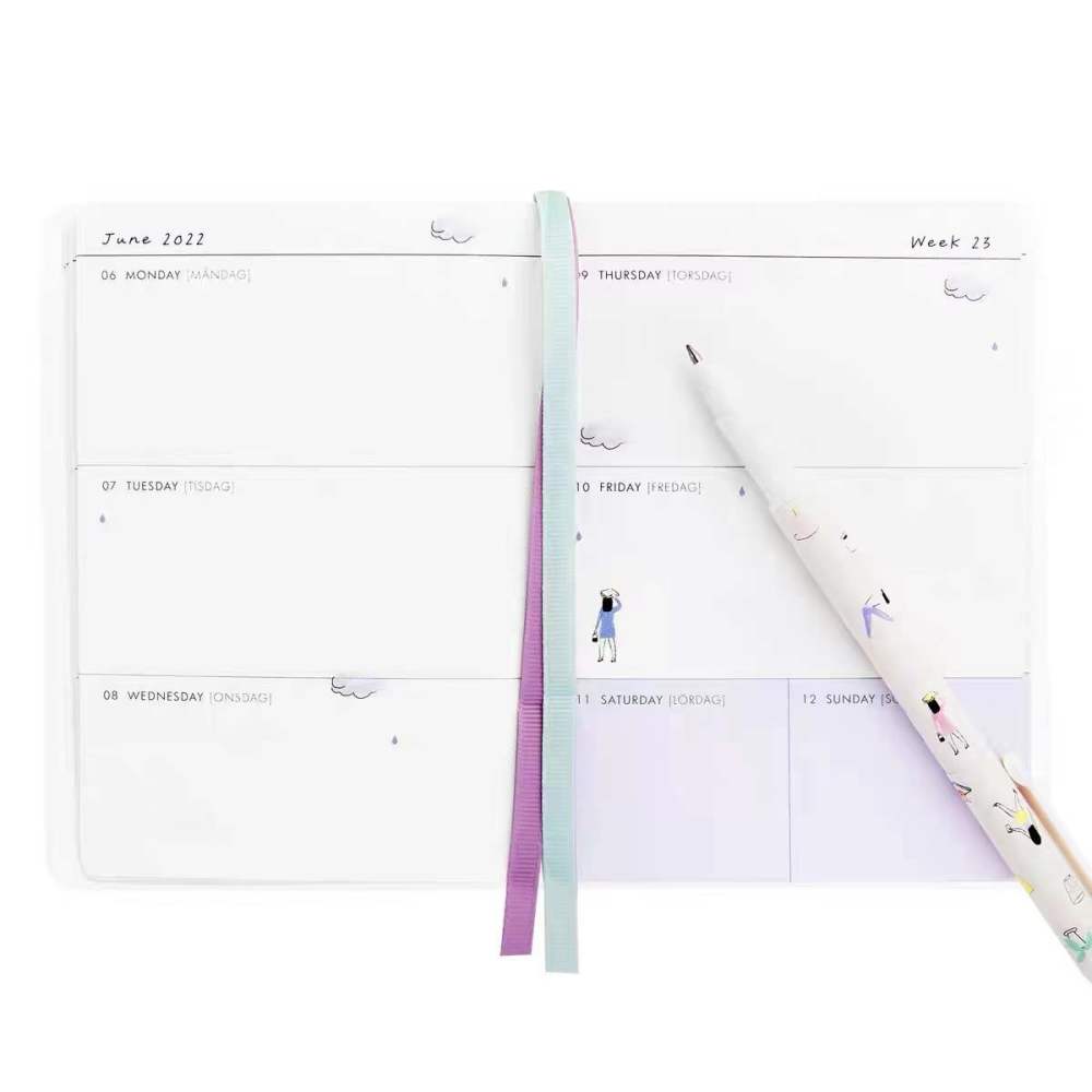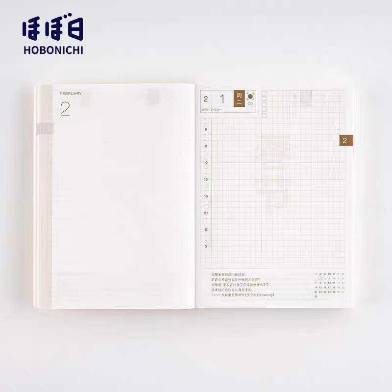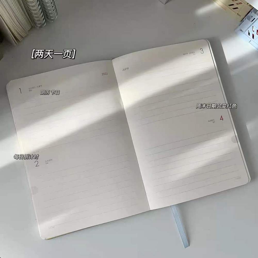 锦一文具也推出了两日一页的手账本。这本手帐固定日期,内页是横线格式。内页纸采用了 100 g 重的纸张,算是在轻薄和性能之间比较平衡的重量。锦一在内页设计上包括了两天一页、月计划、打卡记账等多种功能页,但相比之下,设计上就比较简单,就是横线加上当日的日期,适合只想简单记录当天生活的朋友,没有那么细致。由于是中国本土品牌,锦一的这款手账本还会标明阴历和中国的节日。周末的日期会变成红色。