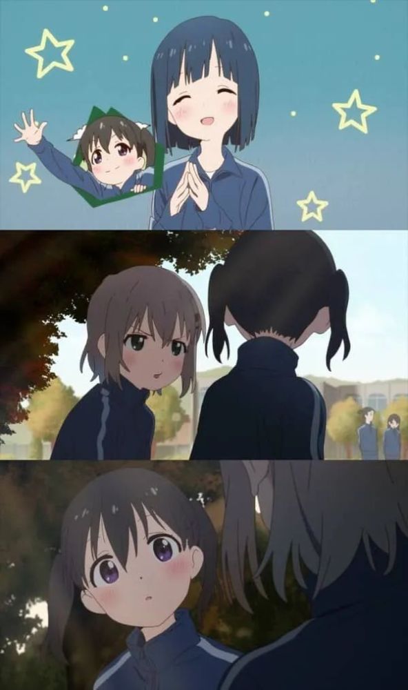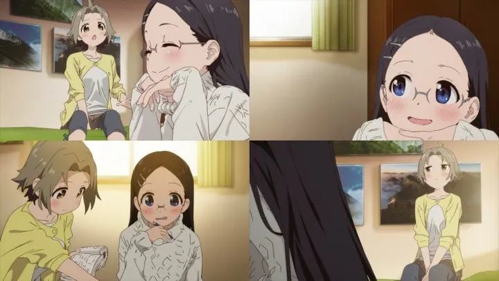 正是在这一时刻, 日向意识到, 将来她毕业后也必须像学姐一样选择自己要走的道路. 此前, 她常常和小枫一起担任小葵的登山导师, 与朋友们共度几乎所有的悠哉日常. 但是这样的日子终有一天可能结束; 或者说, 注定会结束. 不论是否愿意, 她们的脑海中只能留有对那个文静腼腆, 会被到处拉着跑的灰发小女孩的一点模糊印象. 小葵也得做出自己的选择, 她最亲密的朋友将只会是无数个需要权衡的因素之一. 但回过头来说, 除了现实的残酷以外, 我们还是可以在 "优香-小枫" 和 "日向-小葵" 这两组朋友之间心理活动的对比里找到一些甜蜜. 简直就像这个身着背带裤的吃醋少女能于一瞬间预感到, 在共同经历所有的磨难之后, 这些 "奇怪的组合" 终将结下不解之缘.
