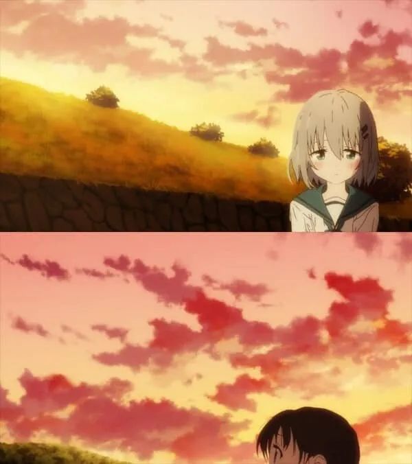 傍晚时分, 太阳尚未落下, 月亮已然升起. 这个过渡镜头暗示两人的友谊又将出现新的裂痕: 紧接着的画面其实是第一季首话末尾的一处镜头. 在那一话中, 日向一放学就马上拉着小葵回家, 展示自己父亲收藏的登山装备. 然而在本集, 情况发生了巨大变化: 两人不再有肢体接触, 甚至没有一个占主导性地位的角色. 她们对视了片刻, 接着小葵就同日向道别并立刻扭头跑回家去.