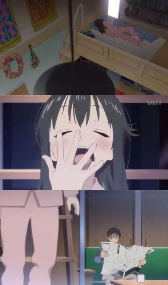 有趣的是, 日向在小枫和优香到来之前坐姿更加懒散