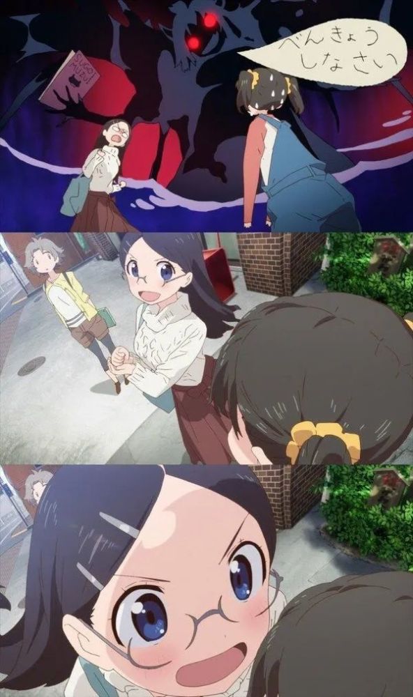 这一整段, 无论搞笑镜头还是脑内想象, 都采用了无影作画 (即字面意义上没有阴影): 通过移除阴影, 突出刻画人物的细微表情. 凭借这种方法, 无需特别的画面形变或者视觉隐喻, 只消扎实的关键张本身纯粹而又压倒性的力量, 就能够表现小葵的倔强和日向的震惊, 为场景增添一抹严肃与节制. 导演没有依照这部动画以往的风格又安排一个 happy ending, 而是着重于深入刻画两位少女情感表现的潜在原因, 为观众从不同视角呈现二者的友谊与摩擦.