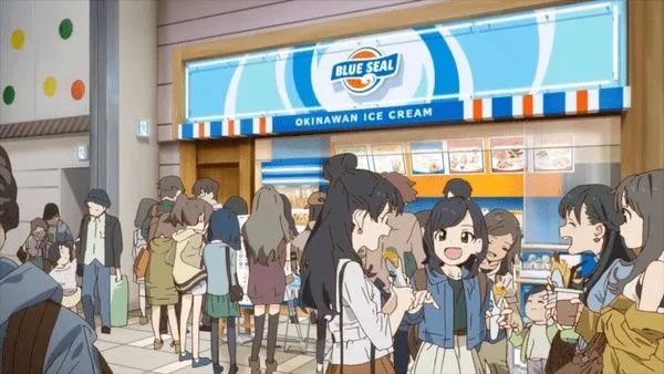 相较于大家更熟悉的地标建筑, 动画对小葵去池袋游玩之处的呈现更侧重于 "当地居民", 这是有充分理由的: 我们谈论的仍然是一个女孩子们的娱乐场所, 她们和朋友们在这里一边游玩一边炫耀好看的衣服, 度过快乐的下午. 一个地区的气质最好的体现方式是描绘那里各个阶层具有代表性的人物, 而不是通过大量的背景图片. 最靠近镜头的几位女生, 其衣着和姿态无不流露着愉悦, 散发着青春活力. 若是置于其他动画中, 她们也许不会被当成龙套, 因为其样貌独特, 好看得不像路人.