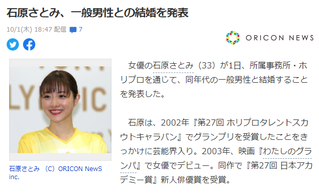 要说这个十一假期,日本娱乐圈最大的新闻,那肯定是石原女士官宣婚讯吧??