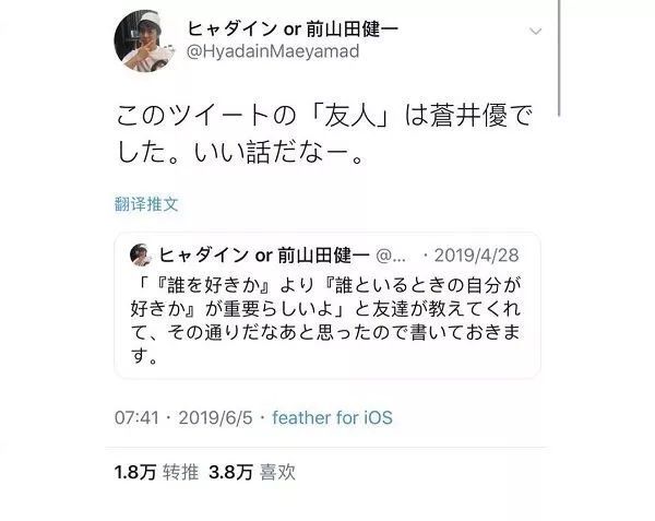 ▲苍井优之前告诉我,“比起你喜欢谁,更重要的是你喜欢跟谁在一起时的自己。”