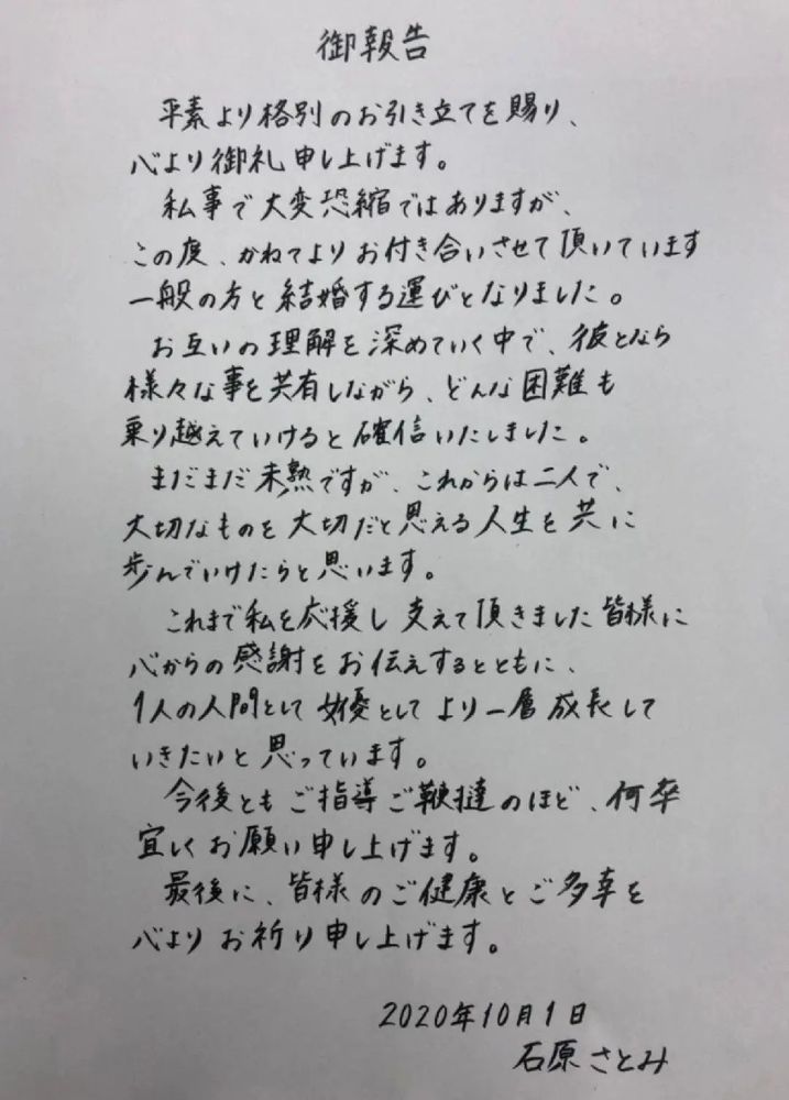 很抱歉因为个人事务打扰到大家,我要和交往了很久的圈外男性结婚啦。
